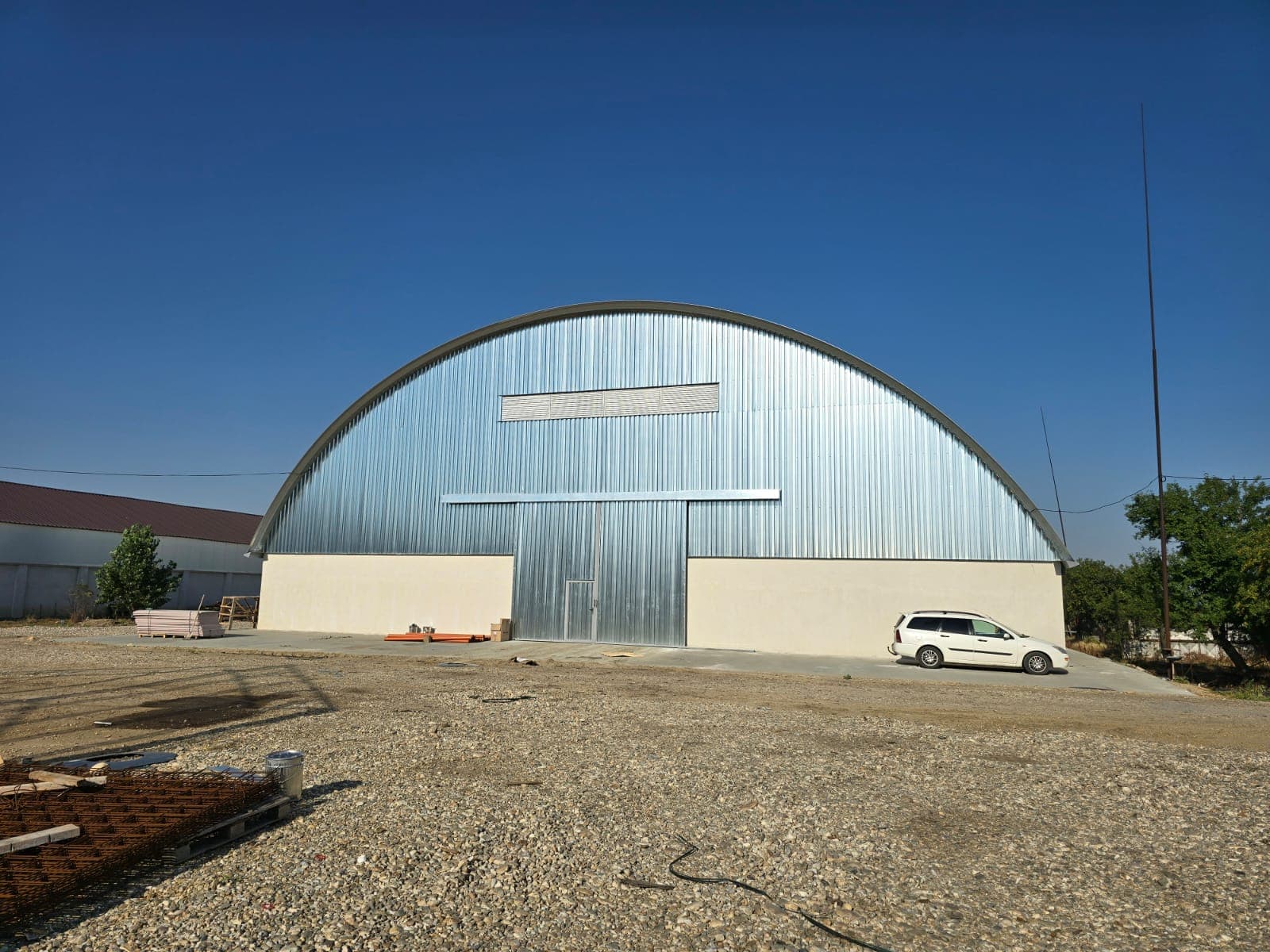 Detalii ale proiectului: latime = 29 m, lungime = 55 m, amplasare pe ziduri de 3 m inaltime. Lucrarea prezinta burlane de colectare a apei pluviale.