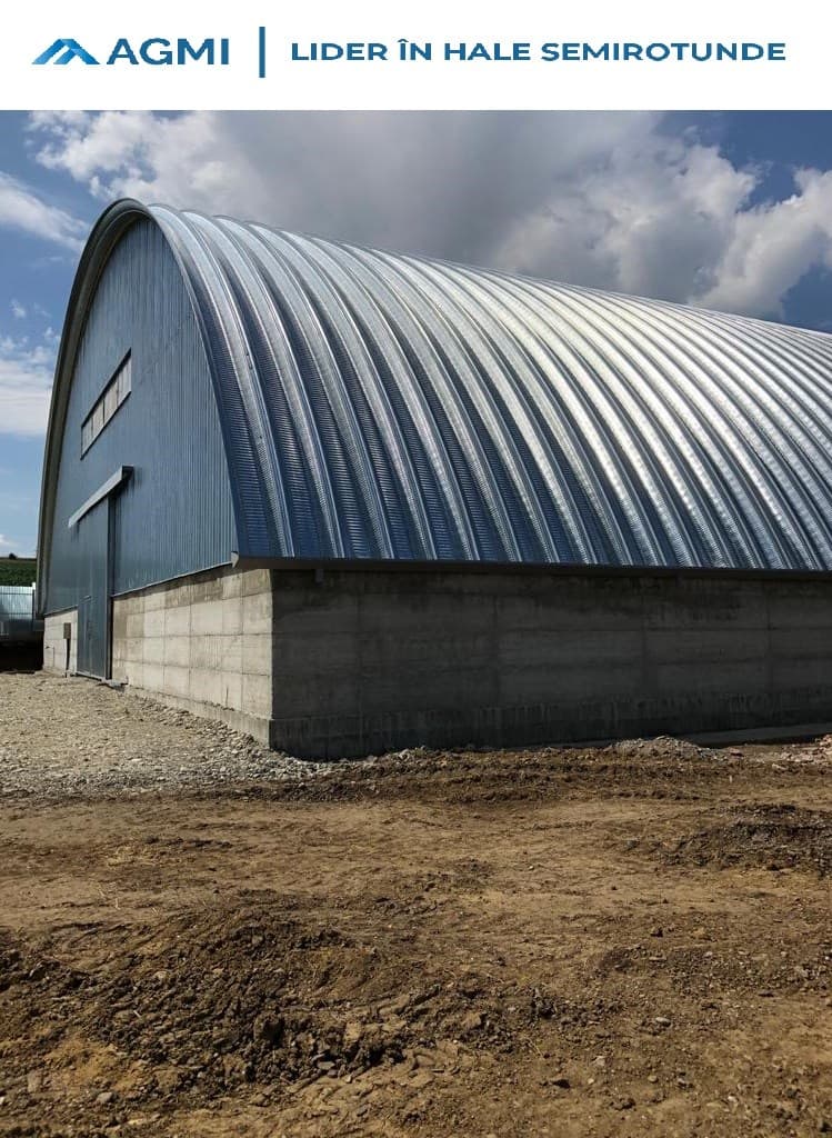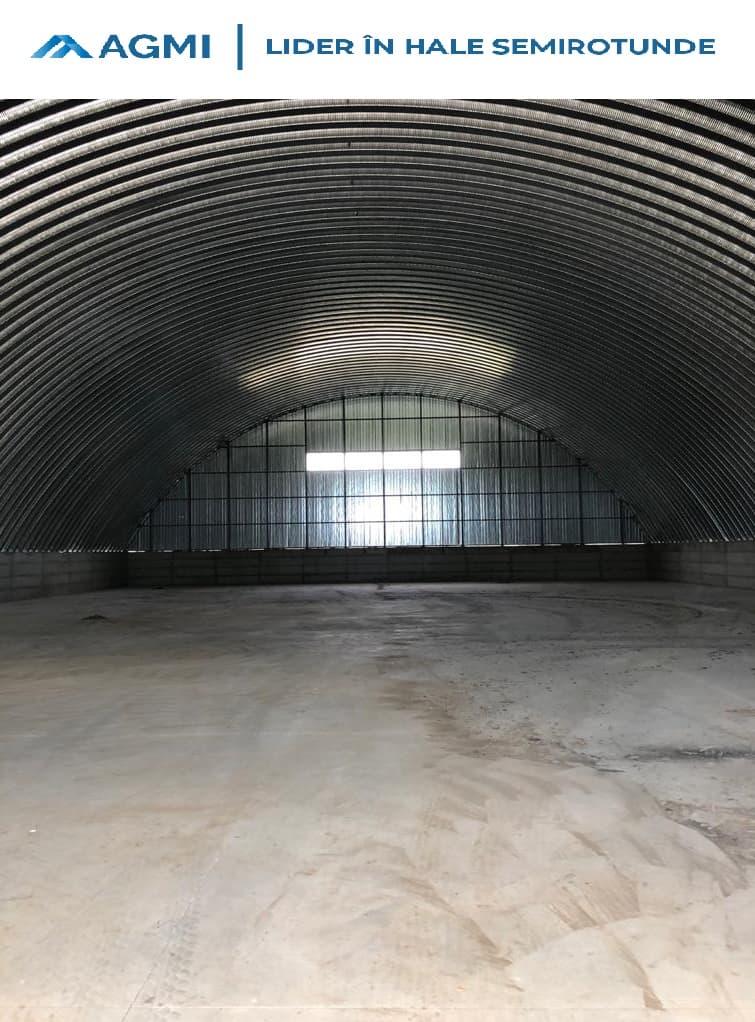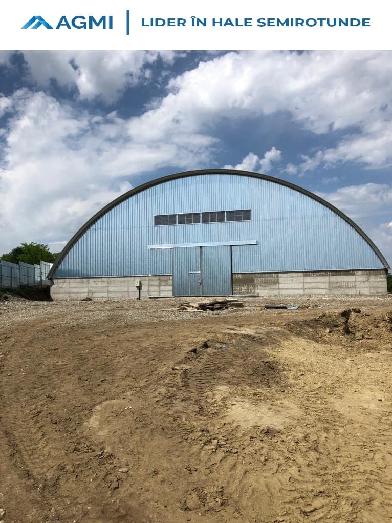 Hală semirotundă finalizată în Movileni, județul Vaslui. Dimensiuni: 30 m lățime, 50 m lungime, amplasat pe pereți de 2 m înălțime.