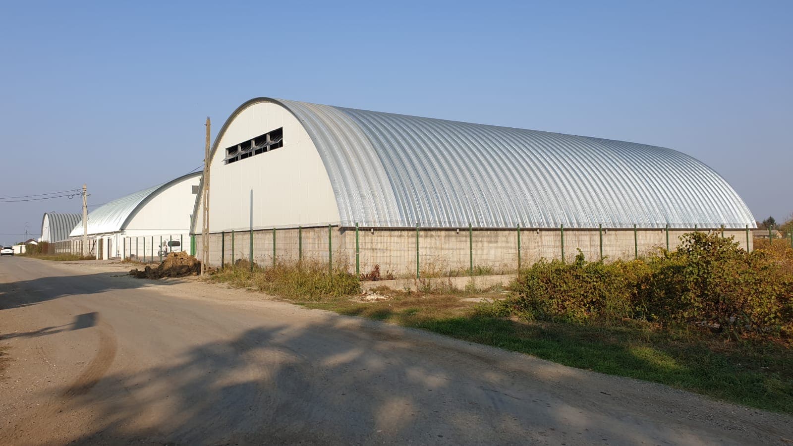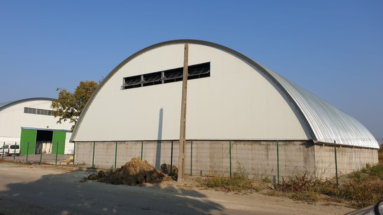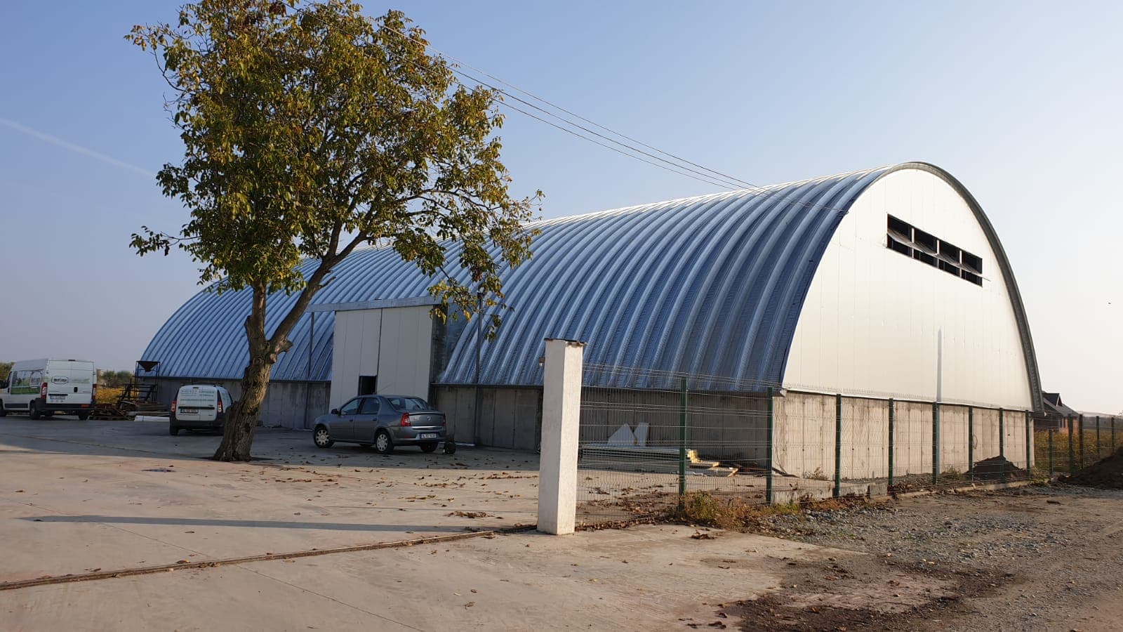 Lucrare finalizată la Perieți, județul Ialomița. Hala prezintă ușă laterală și închideri cu panou sandwich.
