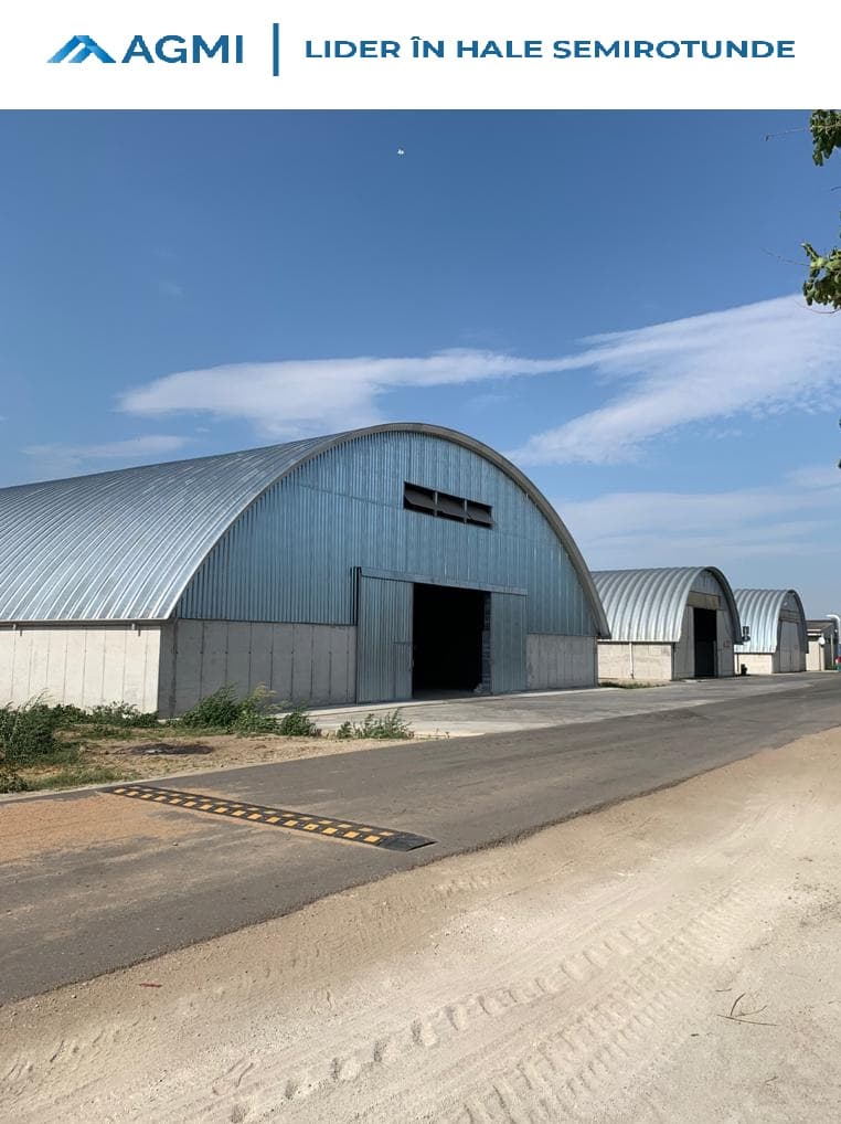 Hală semirotundă finalizată în comuna Rusănești, județul Olt. Dimensiuni: 28 m deschidere, 100 m lungime, înălțime perete de 2,7 m. Această hală este a 3-a la rând construită pentru același beneficiar.